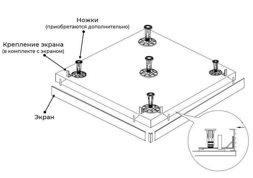 Рекомендованы ножки для поддона для установки экрана: