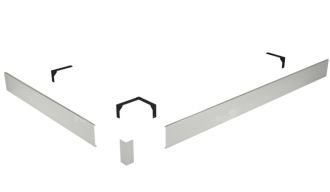 Комплектация: 2 экрана (фронтальный и боковой), соединительный уголок, крепление к ножкам на которые устанавливается поддон.