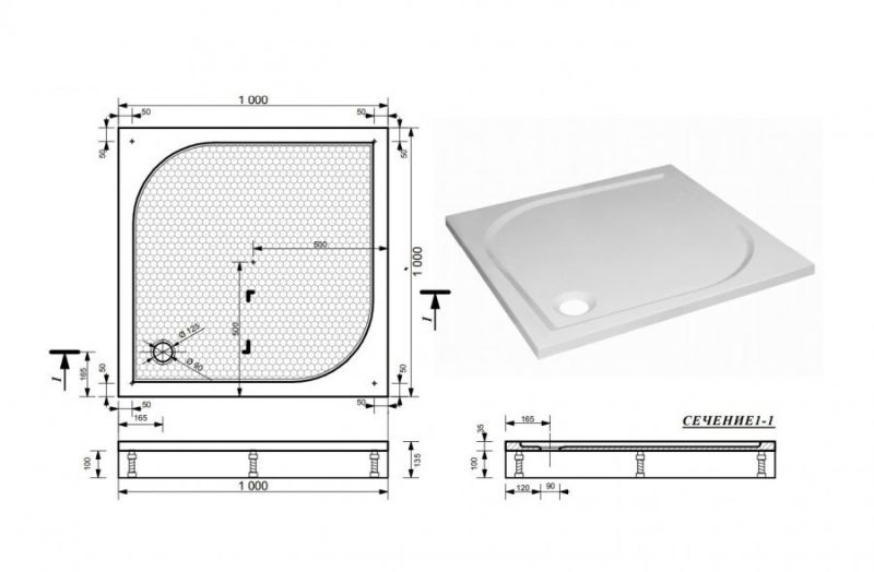 - Размеры: 1000х1000х100 см