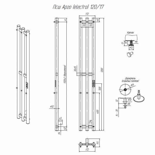 Электрический полотенцесушитель Altasan Арго Арго12017ЧМ Черный муар 120х17 купить