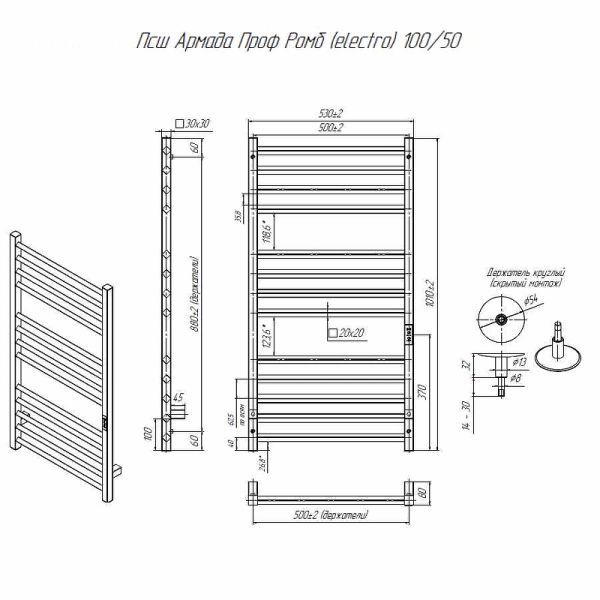 Электрический полотенцесушитель Altasan АрмадаПроф АрмадаПрофР10050ЧМ Черный муар 100х50 купить