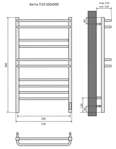 Электрический полотенцесушитель Aquatek Бетта AQ EL KRC1090BL П10 50x90см чёрный муар купить
