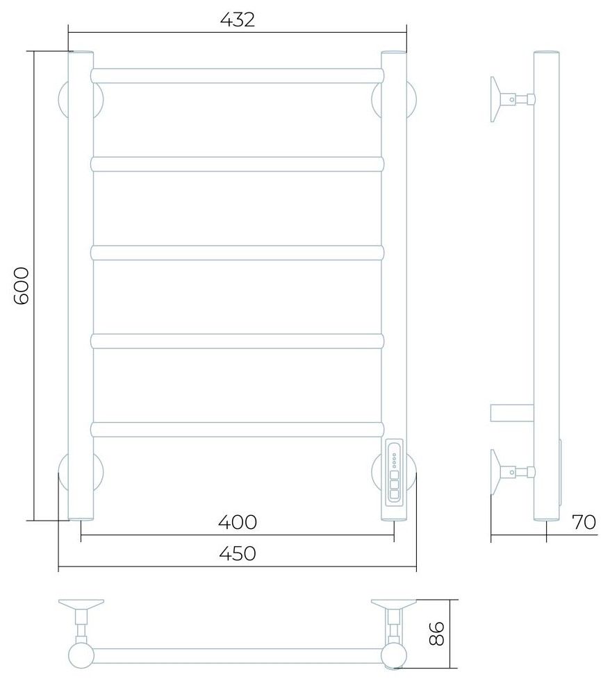Заглушки на концах стоек, тип диммера - кнопочный (Quick Touch), крепления к стене.