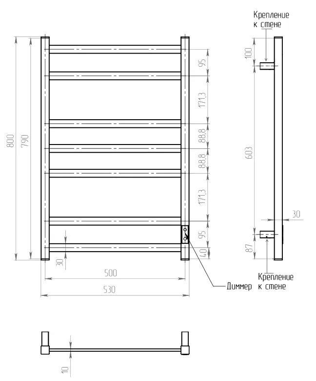Полотенцесушитель сухого типа с нагревательным кабелем