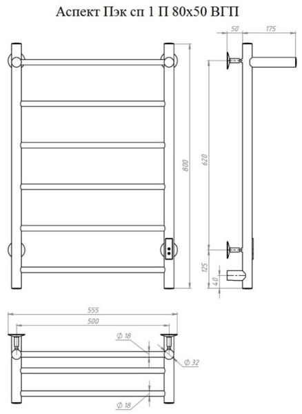 Электрический полотенцесушитель Тругор Аспект Пэк сп 1 П с полкой 80x50см чёрный АспектПэксп1П/8050чернВГП купить