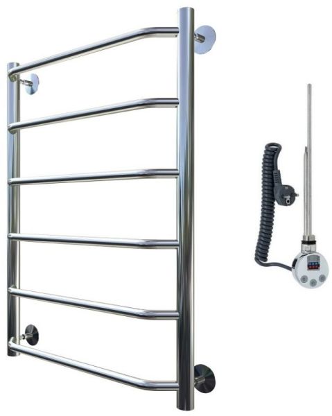 Внимание! Для скрытого монтажа электропроводки необходимо приобрести комплект скрытого подключения.Полотенцесушитель электрический комплектуется ТЭНом с терморегулятором и таймером.Изделие производится из нержавеющей стали AISI 201. Вертикальные трубы d -32 мм., для горизонтальных вставок используется труба d — 18 мм.Нагревательным элементом в полотенцесушителе является ТЭН. Полотенцесушитель заполнен бытовым антифризомЭкономичность: ТЭН нагревает антифриз до нужной температуры и выключается, далее при остывании полотенцесушителя он включается опять. Таким образом он работает не постоянно и получается, что ТЭН потребляет электричество не 300 Вт, а порядка 100 — 150 ВтМощность электрического прибора порядка 100 Вт при стоимости 1 Вт — 5 руб несложно посчитать: 100Вт х 24 = 2,4 кВт в сутки. Стоимость эксплуатации изделия за сутки 2,4 кВт х 5 руб. = 12 руб. При максимальной температуре расход электричества за 30 дней составит порядка 360 руб. При условии если сушка работает круглосуточно на максимальной температуре.Удобство монтажа: Полотенцесушитель крепится к стене на четыре держателя. Изначально ТЭН не установлен в полотенцесушитель для безопасной транспортировки, его можно установить, как справа, так и слева предварительно перевернув полотенцесушитель вверх ногами и выкрутив заглушку с нужной стороны на место в которое установится ТЭН.Примечание. Внимательно изучите инструкцию по установке ТЭНа!Скрытое подключение: Для скрытого монтажа электропроводки необходимо приобрести комплект скрытого подключения.Подключение в розетку: В комплекте с ТЭНом имеется шнур с вилкой, который будет необходим при подключении к розетке.