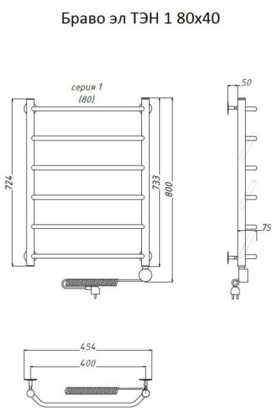 Электрический полотенцесушитель Тругор Браво 1 80x40см хром Браво1/элТЭН8040