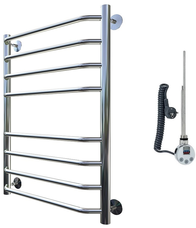 Внимание! Для скрытого монтажа электропроводки необходимо приобрести комплект скрытого подключения.Полотенцесушитель электрический комплектуется ТЭНом с терморегулятором и таймером.Изделие производится из нержавеющей стали AISI 201. Вертикальные трубы d -32 мм., для горизонтальных вставок используется труба d — 18 мм.Нагревательным элементом в полотенцесушителе является ТЭН. Полотенцесушитель заполнен бытовым антифризомЭкономичность: ТЭН нагревает антифриз до нужной температуры и выключается, далее при остывании полотенцесушителя он включается опять. Таким образом он работает не постоянно и получается, что ТЭН потребляет электричество не 300 Вт, а порядка 100 — 150 ВтМощность электрического прибора порядка 100 Вт при стоимости 1 Вт — 5 руб несложно посчитать: 100Вт х 24 = 2,4 кВт в сутки. Стоимость эксплуатации изделия за сутки 2,4 кВт х 5 руб. = 12 руб. При максимальной температуре расход электричества за 30 дней составит порядка 360 руб. При условии если сушка работает круглосуточно на максимальной температуре.Удобство монтажа: Полотенцесушитель крепится к стене на четыре держателя. Изначально ТЭН не установлен в полотенцесушитель для безопасной транспортировки, его можно установить, как справа, так и слева предварительно перевернув полотенцесушитель вверх ногами и выкрутив заглушку с нужной стороны на место в которое установится ТЭН.Примечание. Внимательно изучите инструкцию по установке ТЭНа!Скрытое подключение: Для скрытого монтажа электропроводки необходимо приобрести комплект скрытого подключения.Подключение в розетку: В комплекте с ТЭНом имеется шнур с вилкой, который будет необходим при подключении к розетке.
