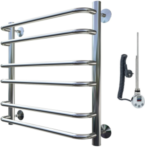 Внимание! Для скрытого монтажа электропроводки необходимо приобрести комплект скрытого подключения.Полотенцесушитель электрический комплектуется ТЭНом с терморегулятором и таймером.Изделие производится из нержавеющей стали AISI 201. Вертикальные трубы d -32 мм., для горизонтальных вставок используется труба d — 18 мм.Нагревательным элементом в полотенцесушителе является ТЭН. Полотенцесушитель заполнен бытовым антифризомЭкономичность: ТЭН нагревает антифриз до нужной температуры и выключается, далее при остывании полотенцесушителя он включается опять. Таким образом он работает не постоянно и получается, что ТЭН потребляет электричество не 300 Вт, а порядка 100 — 150 ВтМощность электрического прибора порядка 100 Вт при стоимости 1 Вт — 5 руб несложно посчитать: 100Вт х 24 = 2,4 кВт в сутки. Стоимость эксплуатации изделия за сутки 2,4 кВт х 5 руб. = 12 руб. При максимальной температуре расход электричества за 30 дней составит порядка 360 руб. При условии если сушка работает круглосуточно на максимальной температуре.Удобство монтажа: Полотенцесушитель крепится к стене на четыре держателя. Изначально ТЭН не установлен в полотенцесушитель для безопасной транспортировки, его можно установить, как справа, так и слева предварительно перевернув полотенцесушитель вверх ногами и выкрутив заглушку с нужной стороны на место в которое установится ТЭН.Примечание. Внимательно изучите инструкцию по установке ТЭНа!Скрытое подключение: Для скрытого монтажа электропроводки необходимо приобрести комплект скрытого подключения.Подключение в розетку: В комплекте с ТЭНом имеется шнур с вилкой, который будет необходим при подключении к розетке.