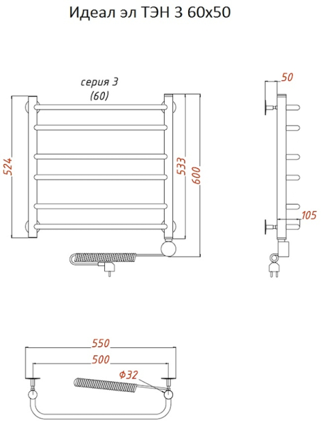 Электрический полотенцесушитель Тругор Идеал 3 60x50см хром Идеал3/элТЭН6050