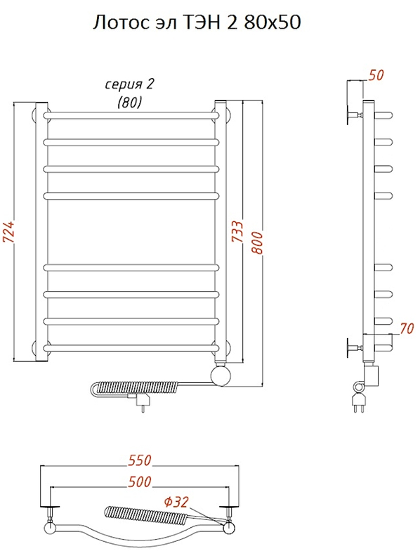 Внимание! Для скрытого монтажа электропроводки необходимо приобрести комплект скрытого подключения.Полотенцесушитель электрический комплектуется ТЭНом с терморегулятором и таймером.Изделие производится из нержавеющей стали AISI 201. Вертикальные трубы d -32 мм., для горизонтальных вставок используется труба d — 18 мм.Нагревательным элементом в полотенцесушителе является ТЭН. Полотенцесушитель заполнен бытовым антифризомЭкономичность: ТЭН нагревает антифриз до нужной температуры и выключается, далее при остывании полотенцесушителя он включается опять. Таким образом он работает не постоянно и получается, что ТЭН потребляет электричество не 300 Вт, а порядка 100 — 150 ВтМощность электрического прибора порядка 100 Вт при стоимости 1 Вт — 5 руб несложно посчитать: 100Вт х 24 = 2,4 кВт в сутки. Стоимость эксплуатации изделия за сутки 2,4 кВт х 5 руб. = 12 руб. При максимальной температуре расход электричества за 30 дней составит порядка 360 руб. При условии если сушка работает круглосуточно на максимальной температуре.Удобство монтажа: Полотенцесушитель крепится к стене на четыре держателя. Изначально ТЭН не установлен в полотенцесушитель для безопасной транспортировки, его можно установить, как справа, так и слева предварительно перевернув полотенцесушитель вверх ногами и выкрутив заглушку с нужной стороны на место в которое установится ТЭН.Примечание. Внимательно изучите инструкцию по установке ТЭНа!Скрытое подключение: Для скрытого монтажа электропроводки необходимо приобрести комплект скрытого подключения.Подключение в розетку: В комплекте с ТЭНом имеется шнур с вилкой, который будет необходим при подключении к розетке.