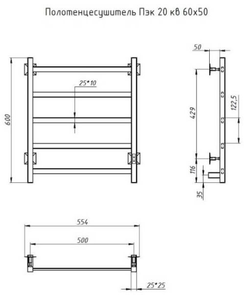 ПЭК — Полотенцесушитель электрический кабельный. Изделие производится из нержавеющей стали AISI 201. Вертикальные трубы d -32 мм., для горизонтальных вставок используется труба d — 18 мм.Нагревательным элементом в полотенцесушителе является греющий кабель — аналог «теплого пола», кабель заправляется внутрь каждой трубы и передает тепло на поверхность изделия. Во включенном состоянии постоянно поддерживается температура 50-600.Экономичность: Полотенцесушитель снабжен панелью управления. Кнопка включения/выключения и таймер на 2 часа и 4 часа, который позволяет включать изделие на ограниченное время. Эта функция дает возможность экономить электричество.Мощность электрического прибора порядка 60W при стоимости 1 кВт — 5 руб несложно посчитать: 60W х 24 = 1,5 кВт в сутки. Стоимость эксплуатации изделия за сутки 1,5 кВт х 5 руб. = 7,5 руб. Максимальный расход электричества за месяц примерно 225 руб. При условии если сушка работает круглосуточно.Удобство монтажа: Полотенцесушитель крепится к стене на четыре держателя. Универсальное исполнение изделия позволяет подключить его, как справа, так и слева.Скрытое подключение: Благодаря приваренным в нижней части вертикальных труб двум распаячным коробкам, в которых соединяется электропроводка, возможно скрытое подключение к электричеству слева и справа.Подключение в розетку: В комплекте также имеется шнур с вилкой, который будет необходим при подключении к розетке.Панель включения:РЕЖИМ №1 — постоянный нагревРЕЖИМ №2 — работа в течение 2 часов с последующим отключением.РЕЖИМ №3 — работа в течение 4 часов с последующим отключением.