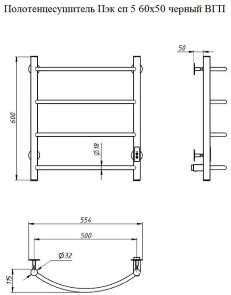 Электрический полотенцесушитель Тругор Пэк сп 5 60x50см чёрный Пэксп5/6050черныйВГП
