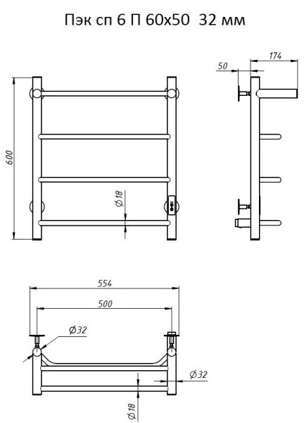 ПЭК — Полотенцесушитель электрический кабельный. Изделие производится из нержавеющей стали AISI 201. Вертикальные трубы d -32 мм., для горизонтальных вставок используется труба d — 18 мм.Нагревательным элементом в полотенцесушителе является греющий кабель — аналог «теплого пола», кабель заправляется внутрь каждой трубы и передает тепло на поверхность изделия. Во включенном состоянии постоянно поддерживается температура 50-600.Экономичность: Полотенцесушитель снабжен панелью управления. Кнопка включения/выключения и таймер на 2 часа и 4 часа, который позволяет включать изделие на ограниченное время. Эта функция дает возможность экономить электричество.Мощность электрического прибора порядка 60W при стоимости 1 кВт — 5 руб несложно посчитать: 60W х 24 = 1,5 кВт в сутки. Стоимость эксплуатации изделия за сутки 1,5 кВт х 5 руб. = 7,5 руб. Максимальный расход электричества за месяц примерно 225 руб. При условии если сушка работает круглосуточно.Удобство монтажа: Полотенцесушитель крепится к стене на четыре держателя. Универсальное исполнение изделия позволяет подключить его, как справа, так и слева.Скрытое подключение: Благодаря приваренным в нижней части вертикальных труб двум распаячным коробкам, в которых соединяется электропроводка, возможно скрытое подключение к электричеству слева и справа.Подключение в розетку: В комплекте также имеется шнур с вилкой, который будет необходим при подключении к розетке.Панель включения:РЕЖИМ №1 — постоянный нагревРЕЖИМ №2 — работа в течение 2 часов с последующим отключением.РЕЖИМ №3 — работа в течение 4 часов с последующим отключением.