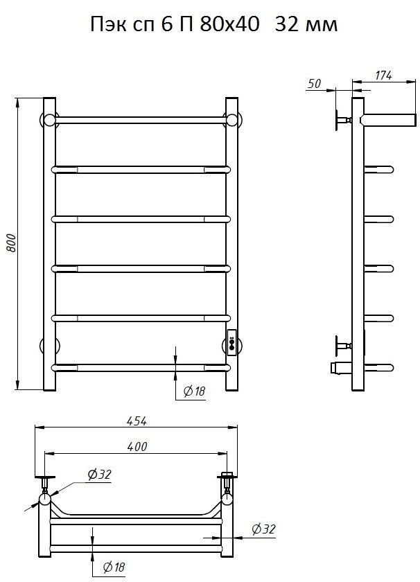 Электрический полотенцесушитель Тругор Пэк сп 6 П с полкой 80x40см хром Пэксп6П80х4032 купить