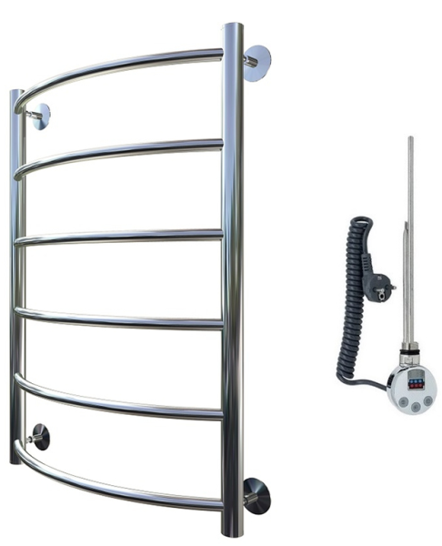 Внимание! Для скрытого монтажа электропроводки необходимо приобрести комплект скрытого подключения.Полотенцесушитель электрический комплектуется ТЭНом с терморегулятором и таймером.Изделие производится из нержавеющей стали AISI 201. Вертикальные трубы d -32 мм., для горизонтальных вставок используется труба d — 18 мм.Нагревательным элементом в полотенцесушителе является ТЭН. Полотенцесушитель заполнен бытовым антифризомЭкономичность: ТЭН нагревает антифриз до нужной температуры и выключается, далее при остывании полотенцесушителя он включается опять. Таким образом он работает не постоянно и получается, что ТЭН потребляет электричество не 300 Вт, а порядка 100 — 150 ВтМощность электрического прибора порядка 100 Вт при стоимости 1 Вт — 5 руб несложно посчитать: 100Вт х 24 = 2,4 кВт в сутки. Стоимость эксплуатации изделия за сутки 2,4 кВт х 5 руб. = 12 руб. При максимальной температуре расход электричества за 30 дней составит порядка 360 руб. При условии если сушка работает круглосуточно на максимальной температуре.Удобство монтажа: Полотенцесушитель крепится к стене на четыре держателя. Изначально ТЭН не установлен в полотенцесушитель для безопасной транспортировки, его можно установить, как справа, так и слева предварительно перевернув полотенцесушитель вверх ногами и выкрутив заглушку с нужной стороны на место в которое установится ТЭН.Примечание. Внимательно изучите инструкцию по установке ТЭНа!Скрытое подключение: Для скрытого монтажа электропроводки необходимо приобрести комплект скрытого подключения.Подключение в розетку: В комплекте с ТЭНом имеется шнур с вилкой, который будет необходим при подключении к розетке.