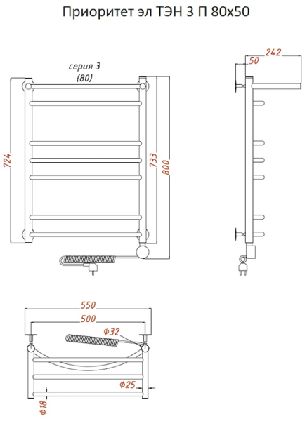 Внимание! Для скрытого монтажа электропроводки необходимо приобрести комплект скрытого подключения.Полотенцесушитель электрический комплектуется ТЭНом с терморегулятором и таймером.Изделие производится из нержавеющей стали AISI 201. Вертикальные трубы d -32 мм., для горизонтальных вставок используется труба d — 18 мм.Нагревательным элементом в полотенцесушителе является ТЭН. Полотенцесушитель заполнен бытовым антифризомЭкономичность: ТЭН нагревает антифриз до нужной температуры и выключается, далее при остывании полотенцесушителя он включается опять. Таким образом он работает не постоянно и получается, что ТЭН потребляет электричество не 300 Вт, а порядка 100 — 150 ВтМощность электрического прибора порядка 100 Вт при стоимости 1 Вт — 5 руб несложно посчитать: 100Вт х 24 = 2,4 кВт в сутки. Стоимость эксплуатации изделия за сутки 2,4 кВт х 5 руб. = 12 руб. При максимальной температуре расход электричества за 30 дней составит порядка 360 руб. При условии если сушка работает круглосуточно на максимальной температуре.Удобство монтажа: Полотенцесушитель крепится к стене на четыре держателя. Изначально ТЭН не установлен в полотенцесушитель для безопасной транспортировки, его можно установить, как справа, так и слева предварительно перевернув полотенцесушитель вверх ногами и выкрутив заглушку с нужной стороны на место в которое установится ТЭН.Примечание. Внимательно изучите инструкцию по установке ТЭНа!Скрытое подключение: Для скрытого монтажа электропроводки необходимо приобрести комплект скрытого подключения.Подключение в розетку: В комплекте с ТЭНом имеется шнур с вилкой, который будет необходим при подключении к розетке.