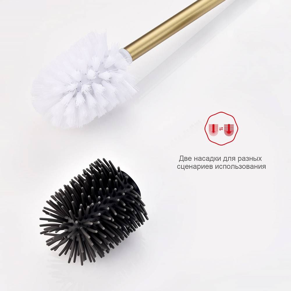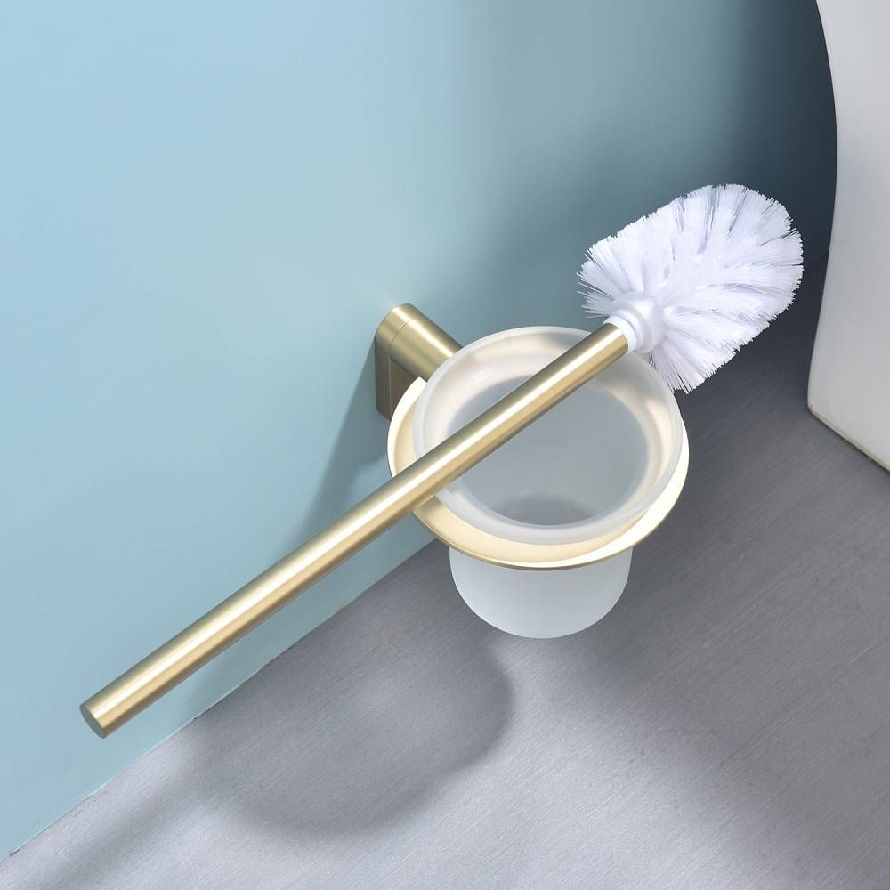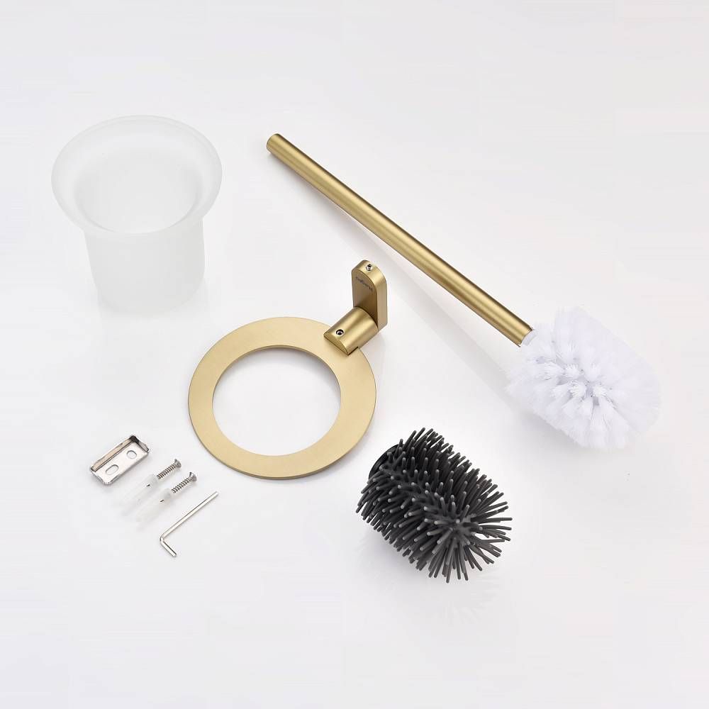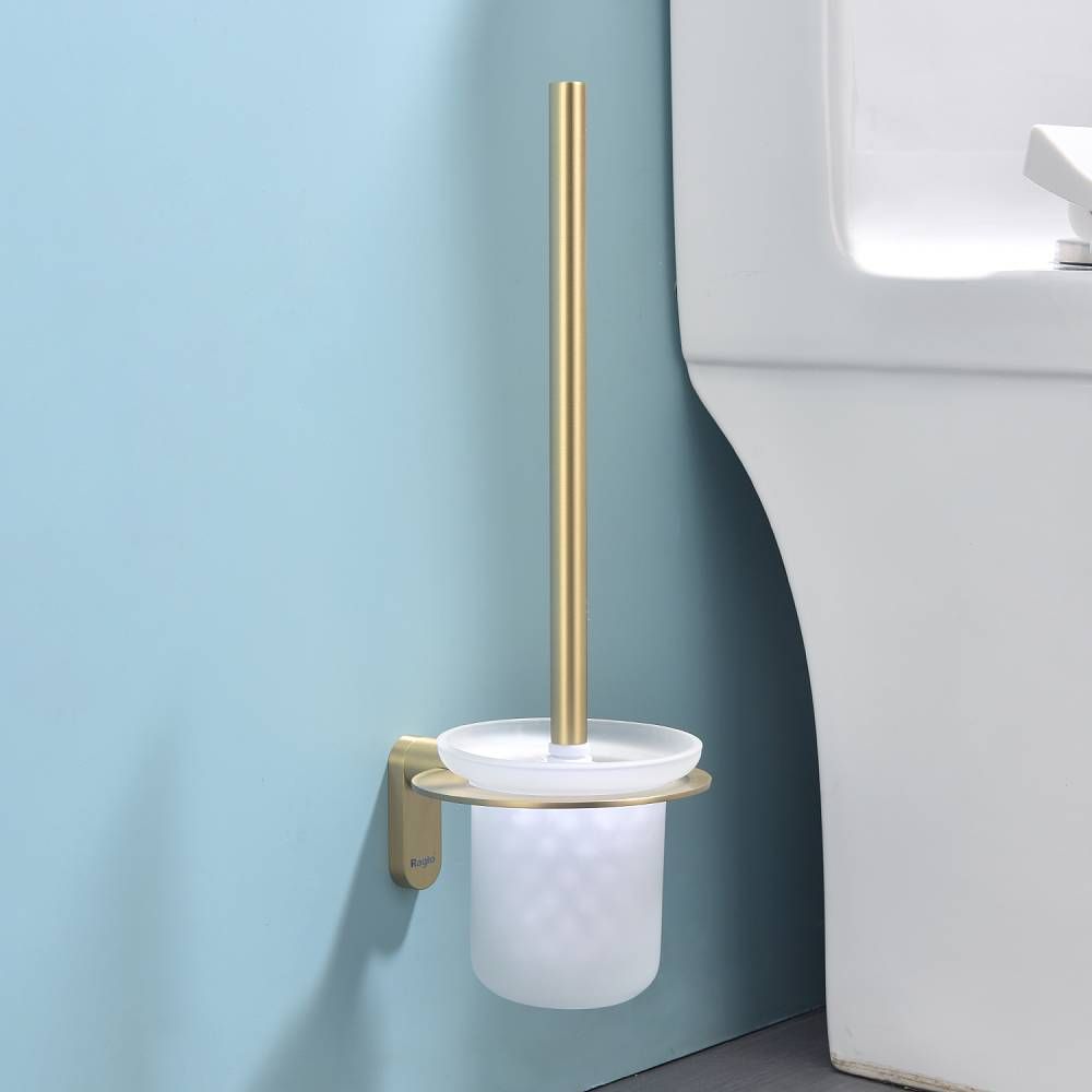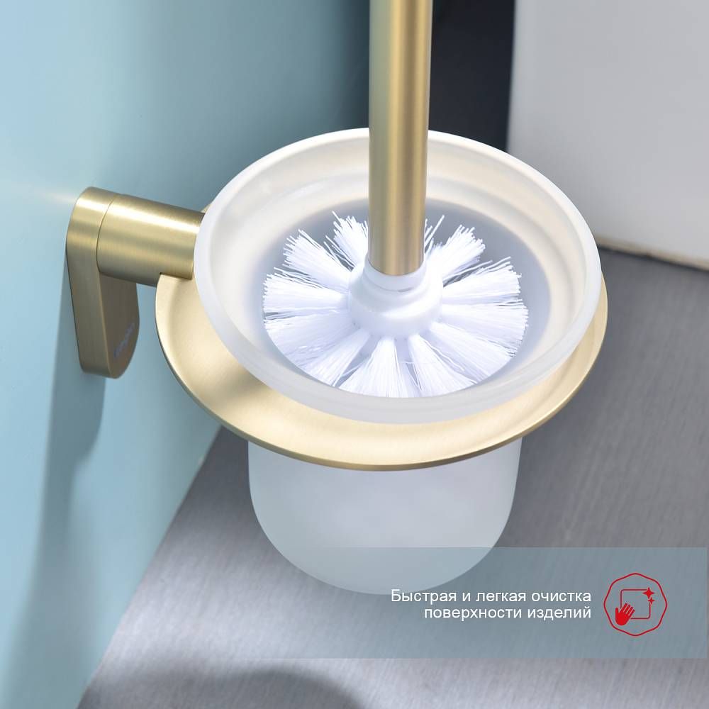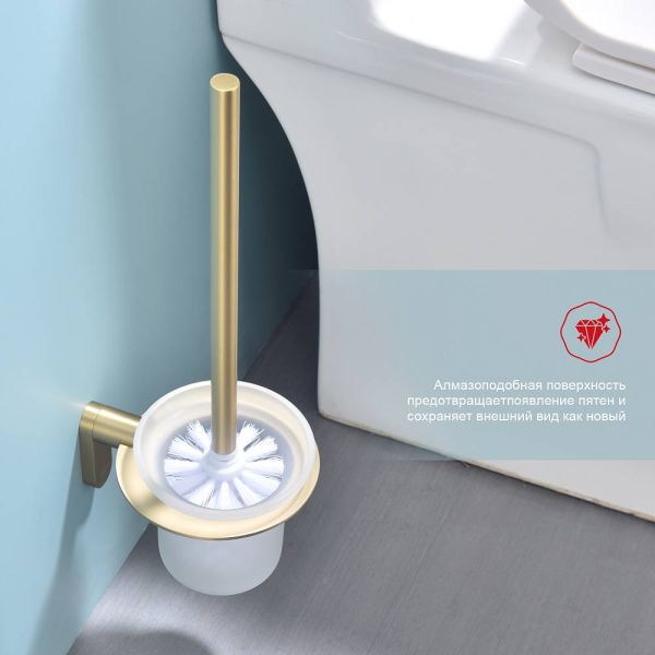 Raglo R300.10.03 Ершик для унитаза настенный с держателем. Форма округлая, цвет - сатиновое золото, полуматовое покрытие. Крепление в комплекте.