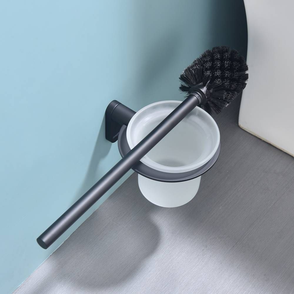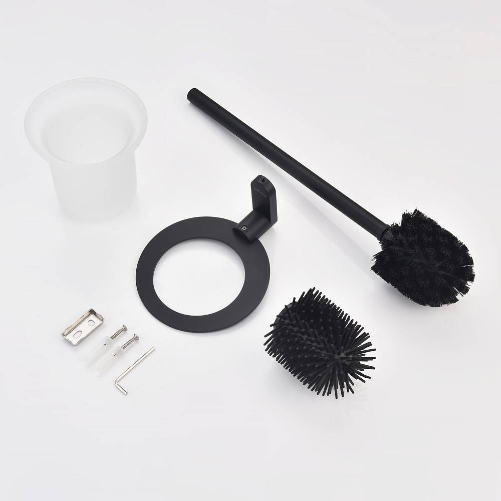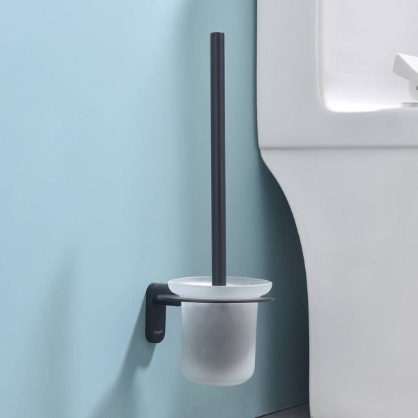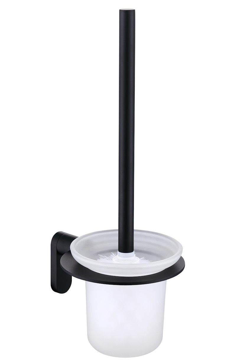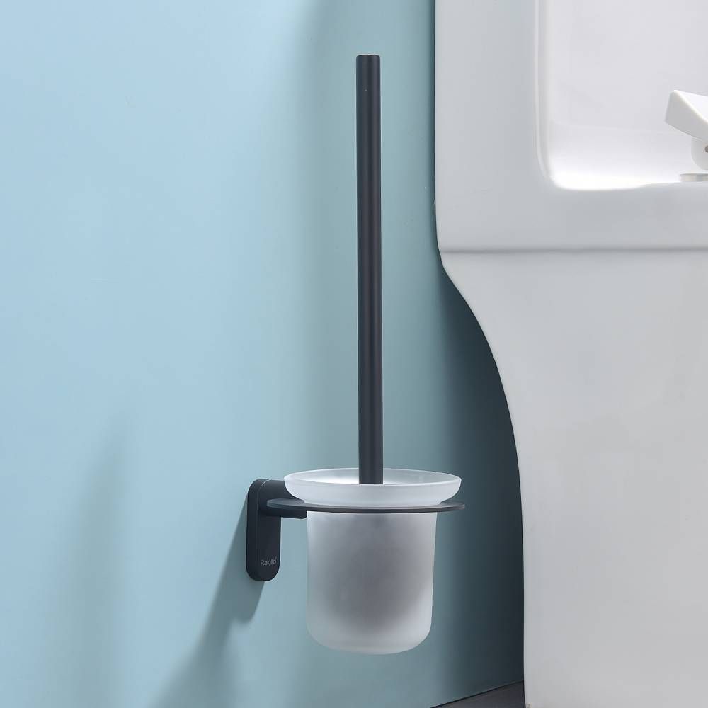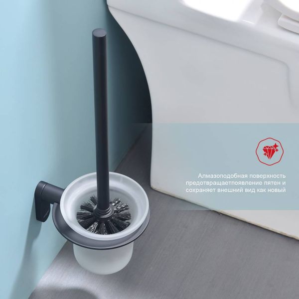 Raglo R300.10.06 Ершик для унитаза настенный с держателем. Форма округлая, цвет - черный, полуматовое покрытие. Крепление в комплекте, две насадки ершика.
