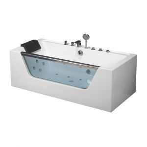 Все гидромассажные ванны Frank поставляются в максимальной комплектации и имеют множества функций. Ванна с гидромассажем Frank F102 пристенная, прямоугольная с аэромассажем,гидромассажем,турбомассажем. В боковой стенке установлен многоцветный подводный фонарь. Также ванна снабжена системой дезинфекции. Форсунки расположены в ванне с учётом эргономики тела и способствуют максимальному охвату поверхности тела при работе аэро- и гидромассажных двигателей. Вся ванна сделана из литьевого акрила. Передний и боковые экраны сделаны единой конструкцией с ванной. Стоит система слива остатков воды из форсунков. Лицевая стенка изготовлена из 10мм закалённого стекла.