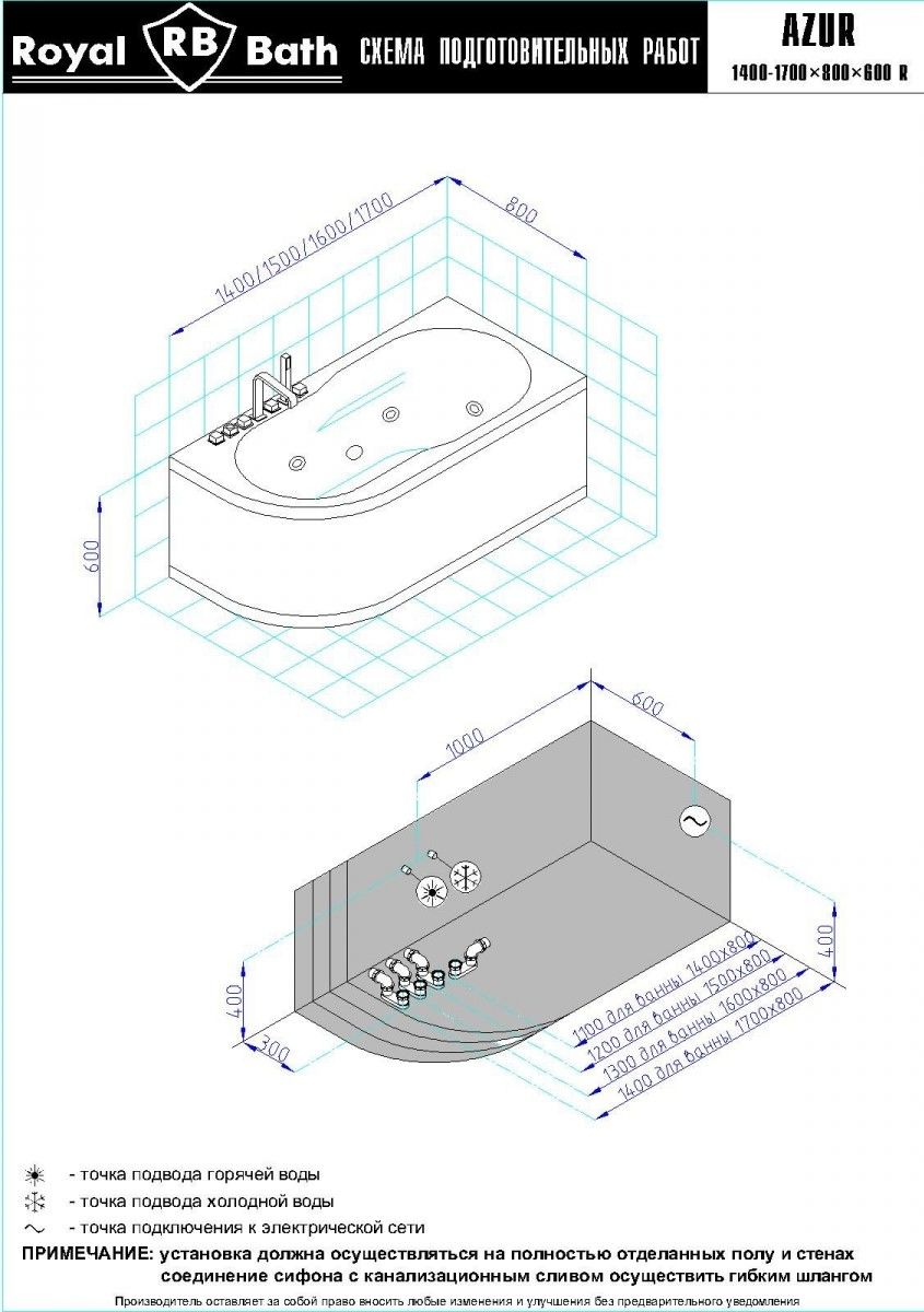 Акриловая ванна Royal Bath - идеальный выбор для создания атмосферы релакса и умиротворения, как в просторной в ванной комнате, так и в комнатном санузле. Основным преимуществом ванны из акрила считается её малый вес, высокая гигиеничность данного материала и низкая теплопроводность, долго сохраняющая комфортную температуру воды.Форма ванны Royal Bath замечательно подойдет к любому интерьерному решению, в различных вариантах размещения внутри ванной комнаты. Пристенная установка - это наиболее традиционный вид установки, а при использовании декоративного экрана пространство под ванной можно использовать как место хранения моющих средств. Оптимальная глубина позволяет принимать ванну с максимальным комфортом и полным расслаблением. Ванна Royal Bath выполнена со строгим соблюдением всех значительных элементов современного стиля.Благодаря тому, что родина бренда Royal Bath - Россия, можно смело быть уверенным в непревзойденном качестве и долговечности ванны, так как производство полностью соответствует стандартам качества. Акриловая ванна Royal Bath - это незаменимый, основной элемент любой ванной комнаты, без которого невозможно обойтись, ни в многоквартирном доме, ни в загородном коттедже.Комплектация гидромассажной ванны:- акриловая ванна Azur 140x80x60;- каркас сварной к ванне Azur 140;- панель к ванне Azur 140;- гидромассажная система на 5 форсунок;- спинной массаж на 6 форсунок;- аэромассаж с хромотерапией 8 форсунок;- слив-перелив для ванны полуавтомат 60 см.Ожидаемый срок поставки 7 дней.Обратите внимание: данная позиция поставляется под заказ! Товар поставляется по 100%-ной предоплате.Данный товар является заказным и имеет индивидуально-определенные свойства.