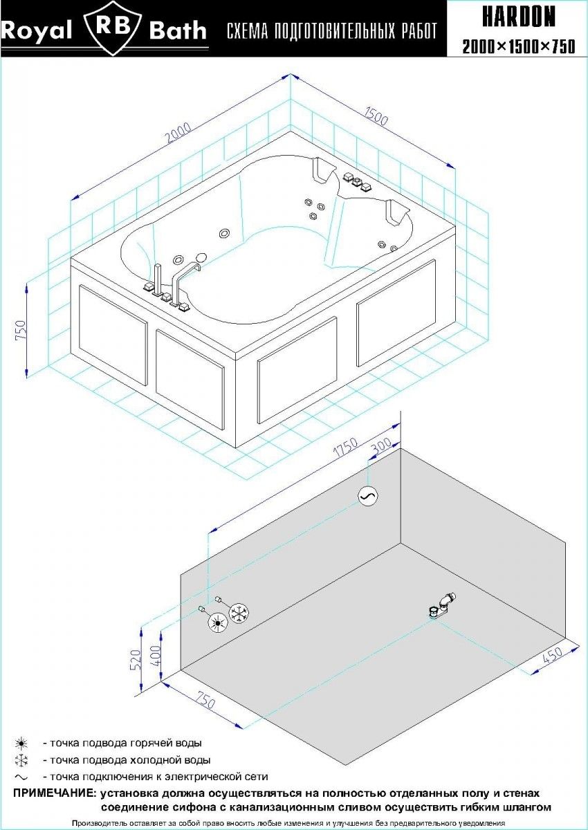 Акриловая ванна Royal Bath - идеальный выбор для создания атмосферы релакса и умиротворения, как в просторной в ванной комнате, так и в комнатном санузле. Основным преимуществом ванны из акрила считается её малый вес, высокая гигиеничность данного материала и низкая теплопроводность, долго сохраняющая комфортную температуру воды.Форма ванны Royal Bath замечательно подойдет к любому интерьерному решению, в различных вариантах размещения внутри ванной комнаты. Пристенная установка - это наиболее традиционный вид установки, а при использовании декоративного экрана пространство под ванной можно использовать как место хранения моющих средств. Оптимальная глубина позволяет принимать ванну с максимальным комфортом и полным расслаблением. Ванна Royal Bath выполнена со строгим соблюдением всех значительных элементов современного стиля.Благодаря тому, что родина бренда Royal Bath - Россия, можно смело быть уверенным в непревзойденном качестве и долговечности ванны, так как производство полностью соответствует стандартам качества. Акриловая ванна Royal Bath - это незаменимый, основной элемент любой ванной комнаты, без которого невозможно обойтись, ни в многоквартирном доме, ни в загородном коттедже.Комплектация гидромассажной ванны:- акриловая ванна Hardon 200x150x75 с каркасом;- панель боковая к ванне Hardon (2 шт.) ;- панель фронтальная к ванне Hardon 200;- гидромассажная система на 8 форсунок;- спинной массаж на 4 форсунки;- aэромассаж с хромотерапией 10 форсунок;- смеситель на борт ванны RB Hardon 611;- слив-перелив для ванны полуавтомат 60 см.Ожидаемый срок поставки 7 дней.Обратите внимание: данная позиция поставляется под заказ! Товар поставляется по 100%-ной предоплате.Данный товар является заказным и имеет индивидуально-определенные свойства.