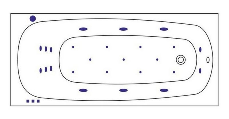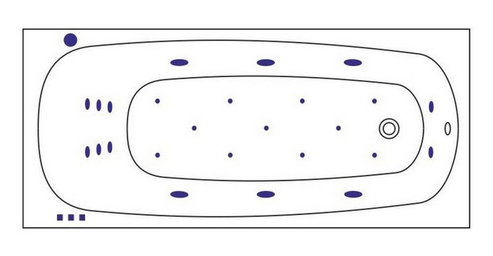 - Аэромассажная система (11 форсунок AERO-JET) с функцией регулировки интенсивности массажа;