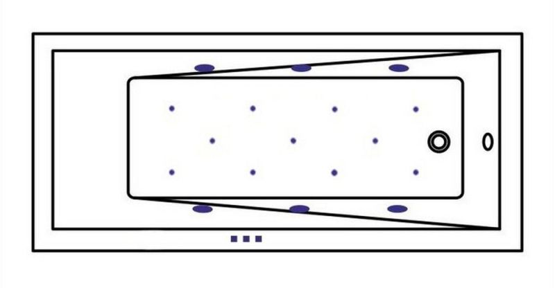 - Аэромассажная система (11 форсунок AERO-JET) с функцией регулировки интенсивности массажа;