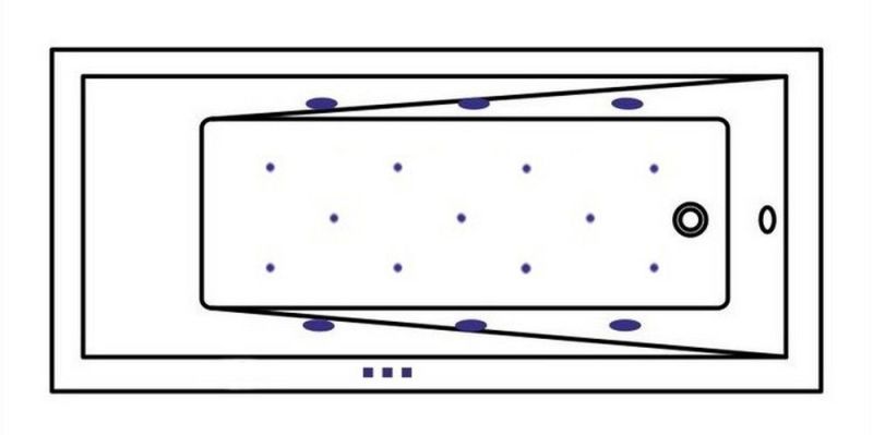 - Аэромассажная система (11 форсунок AERO-JET) с функцией регулировки интенсивности массажа;