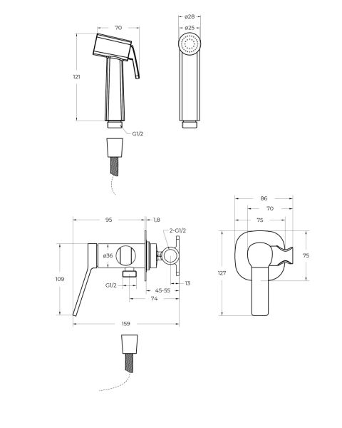 Гигенический душ со смесителем BelBagno ALBANO-HGN-CRM