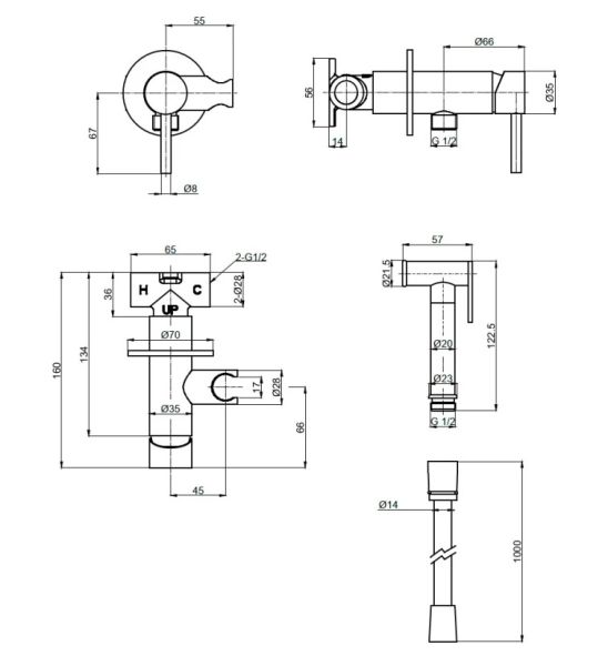 Готовый комплект гигиенического душа;скрытый монтаж;латунная лейка;металл.