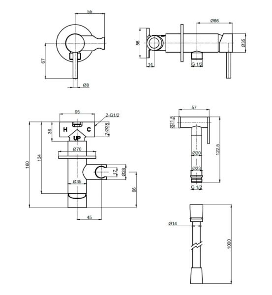 Готовый комплект гигиенического душа;скрытый монтаж;латунная лейка;матовый черный.