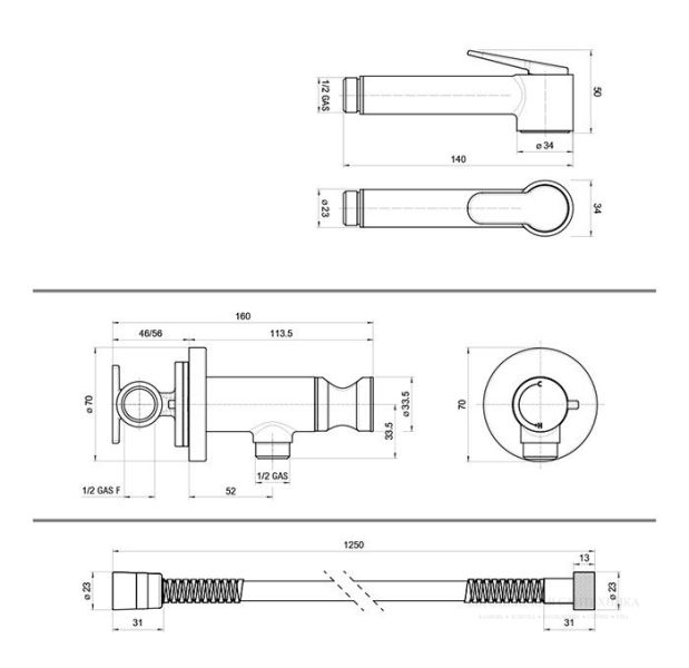 Гигиенический душ Bossini Paloma Brass Mixer Set E37005.021 золото купить