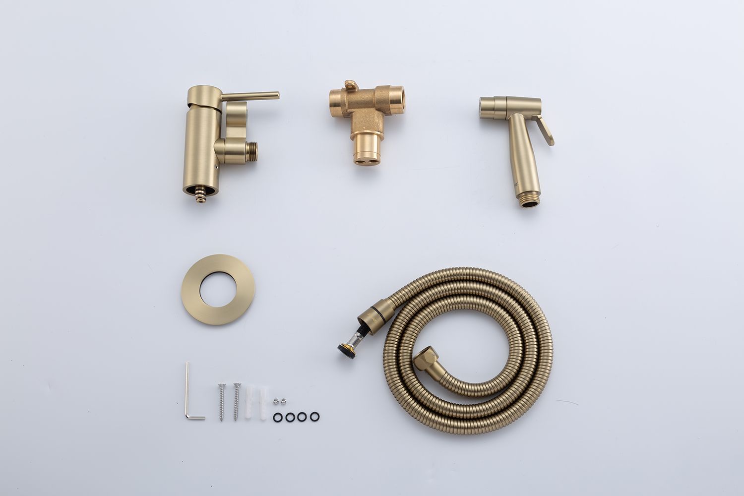 Гигиенический душ G7206-3 - удобный и функциональный аксессуар, который позволяет обеспечить идеальный уровень чистоты и гигиены. Если вы стремитесь к полному комфорту и чистоте, то смело обратите внимание на этот гигиенический душ на унитаз, выполненный в цвете сатиновое золото матовое. Независимо от того, используете ли вы его в ванной комнате или туалете, этот душ станет незаменимым помощником в поддержании идеальной гигиены. Смеситель для биде обеспечивает очищение и освежение сравнимые с приемом душа или ванной, но с большей точностью и удобством. Смеситель гигиенического душа Gappo позволяет легко регулировать напор и температуру воды, чтобы создать идеальные условия для комфортного использования лейки для биде.