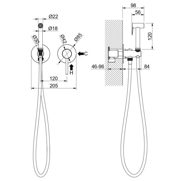 • Смеситель для гигиенического душа (внешняя и скрытая часть)