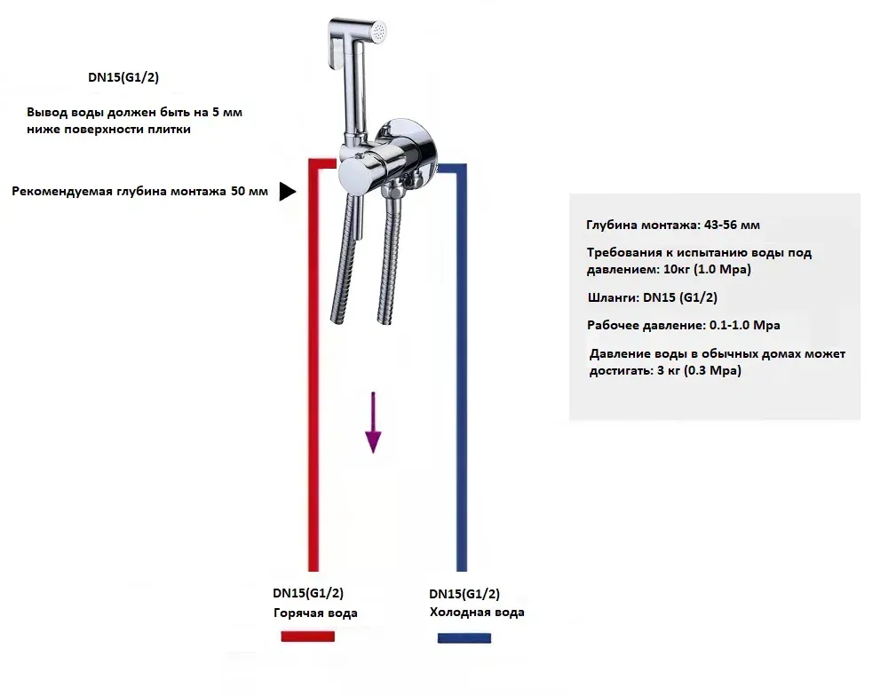 - Стандарт подводки: 1/2