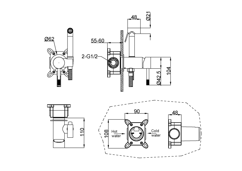 ВНИМАНИЕ! Шланг и лейка не рассчитаны на постоянное запорное давление, после использования необходимо закрыть подачу воды в смесителе.Без использования обратных клапанов, возможен эффект, при котором горячая вода будет "передавливать" холодную воду. Тогда при смешивании горячая вода будет преобладать. В особых случаях вода на выходе из гигиенической лейки может быть очень горячей. Будьте осторожны.