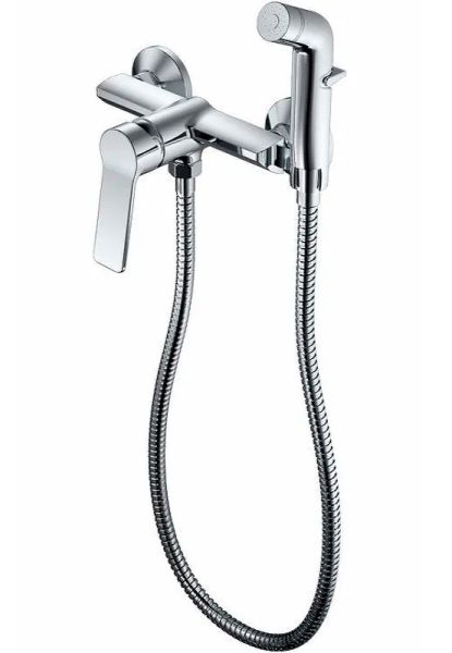 Гигиенический душ со смесителем бренда Haiba.Цвет: хром.В комплект входят: держатель для гигиенической лейки, 2 эксцентрика, лейка, шланг.Керамический картридж 35 мм.Металлическая рукоятка.Душевой шланг 1 метр.Душевая лейка на 1 режим.
