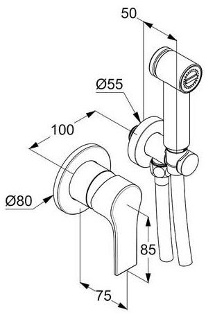 - гигиенический набор - комплект: встраиваемый смеситель для душа внутренняя часть и внешний элемент гигиенический душ с кнопкой включения воды