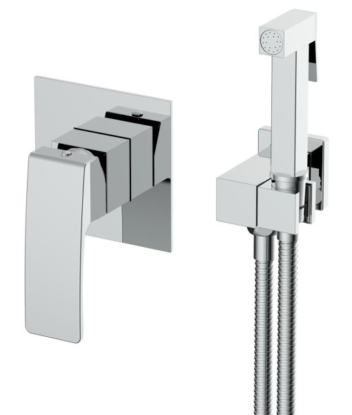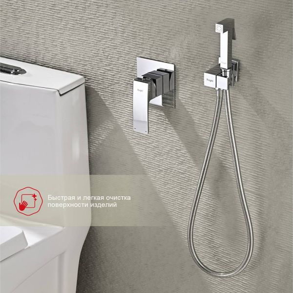 Качественный и современный смеситель с гигиеническим душем R01.53, одна рукоять для того, чтобы регулировать напор воды размещение раздельное. Смеситель для биде устанавливается прямо внутрь стены, что позволит скрыть функциональные элементы, спрятать некоторые элементы монтажа. Латунная душевая лейка работает в одном режиме. Высокопрочный душевой шланг 1200 мм в оплетке двойного вальцевания с трубкой из синтетического каучука вращающийся на 360 градусов. Основной материал корпуса - латунь, проверенный временем материал, который обеспечивает идеальное напыление хромированного покрытия. Квадратная форма душ для биде делает его оригинальным и аутентичным.
