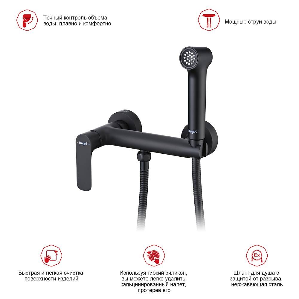 Гигиенический душ со смесителем Raglo R03.51.06 чёрный купить