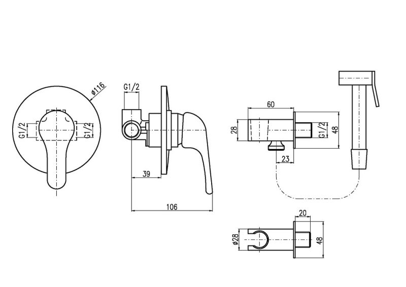 Смеситель/Лейка/Шланг/Держатель