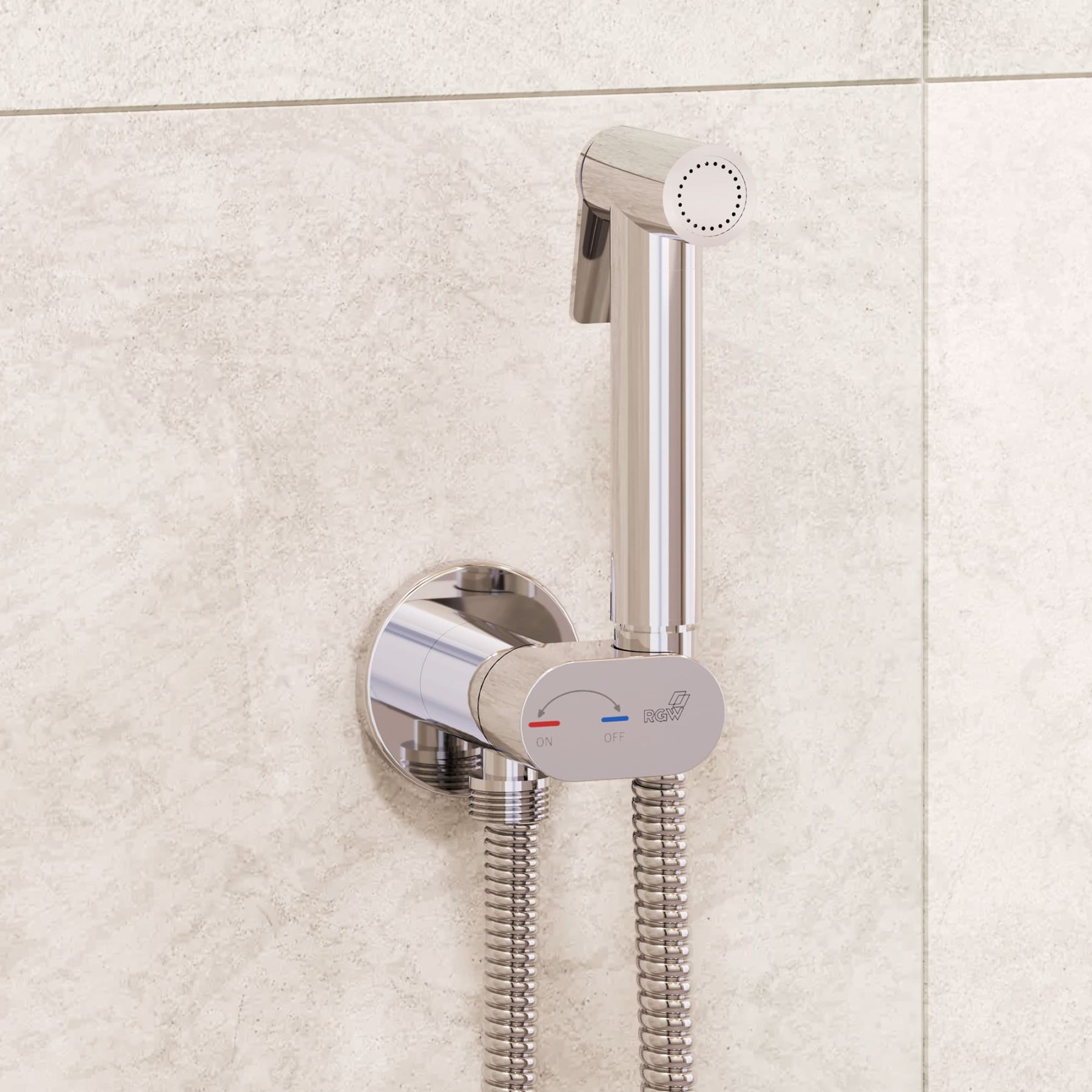 Самый миниатюрный комплект Гигиенического душа цвета хром со смесителем и краном держателем лейки, скрытого монтажа RGW SP-213, с прогрессивным поворотным картриджем, оснащён функцией «Умная блокировка». Гигиенический душ со смесителем круглой формы, инсталляционный, встройка в стену RGW SP-213 — это сантехническое оборудование, придуманное для соблюдения личной гигиены. Обычно его устанавливают возле унитаза, тем самым в небольших пространствах ванных комнат он заменяет биде. Первое, что приходит на ум, когда слышите «Гигиенический душ для унитаза (гигдуш — в бытовом разговоре)» — это моментальная гигиена интимной зоны сразу после туалета без использования туалетной бумаги.Однако в современном быту гигиенический душ для туалета и биде приобретает и другие сценарии использования, например: