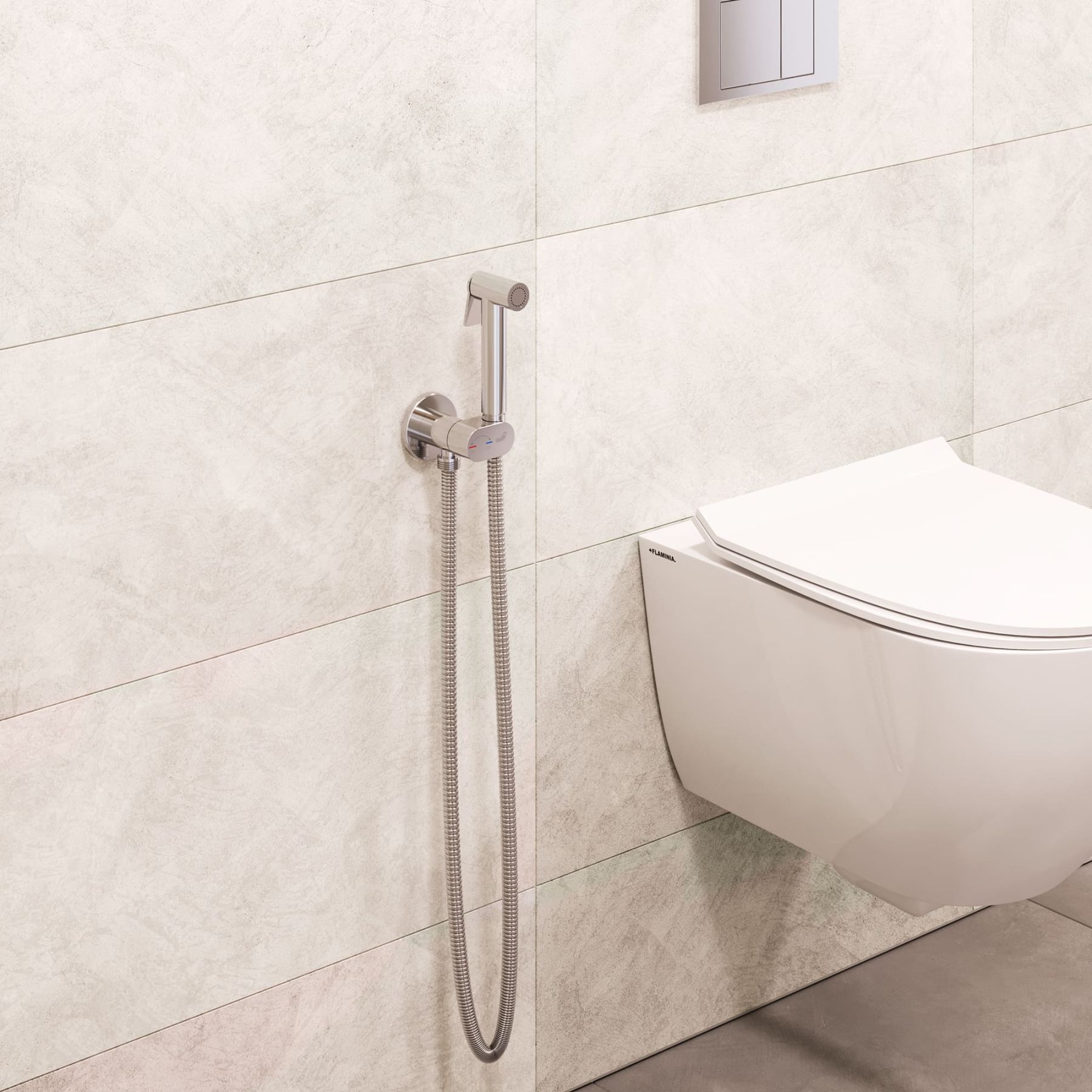 Душ для туалета оснащён функцией «Умная блокировка»Поворотный кран одновременно является и интеллектуальным держателем для лейки. Лейка физически не встанет в держатель, пока кран не закрыт до конца.Эта функция гарантирует 100% защиту от протечек и 100% защиту от фонового расхода воды.Умная блокировка решает часто возникающую проблему при использовании обычного смесителя с гигиеническим душем. Она предотвращает смешивание холодной и горячей воды в трубах из-за разного давления, что поможет избежать неприятных сюрпризов с холодными или же горячими струями при следующем использовании.Простота использования, продуманная инженерия и забота о вашем бюджете — вот что делает этот смеситель для гигиенического душа особенным.