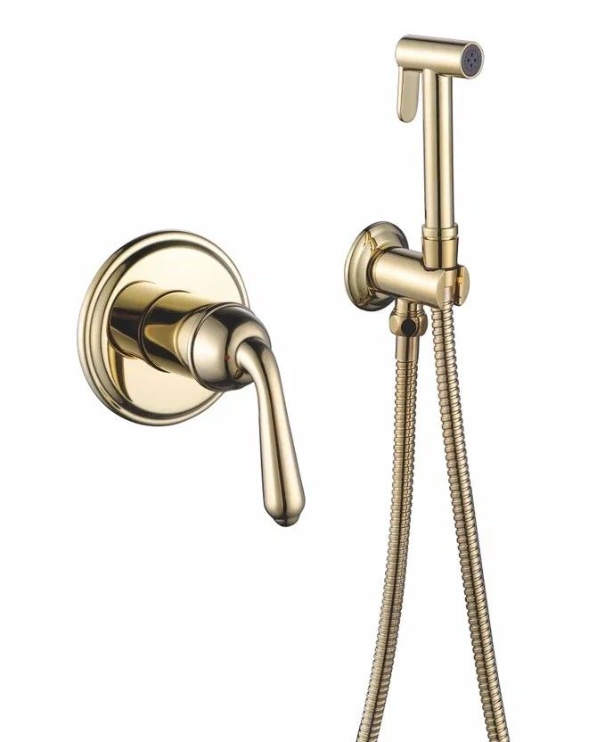 Гигиенический душ со смесителем Rose R0205E, золото.Управление: рычажное.Материал: латунь.Монтаж: внутренний (скрытый).