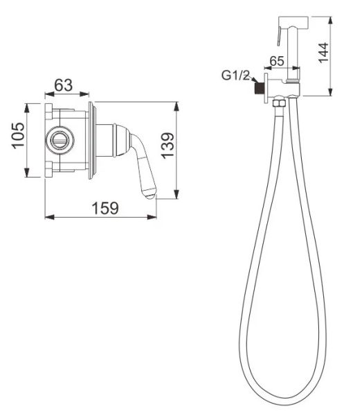Гигиенический душ со смесителем Rose R0205Q, бронза.Управление: рычажное.Материал: латунь.Монтаж: внутренний (скрытый).