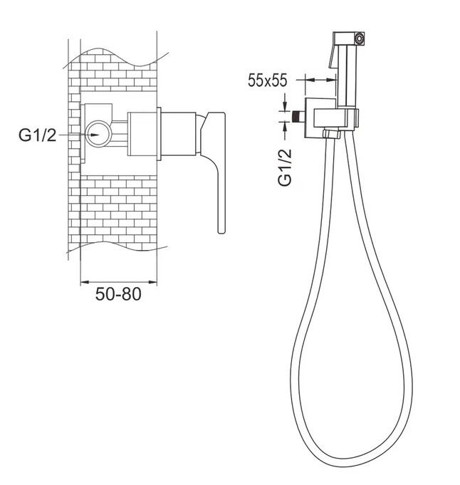 Гигиенический душ со смесителем Rose R1005, хром.Управление: рычажное.Материал: латунь.Монтаж: внутренний (скрытый).