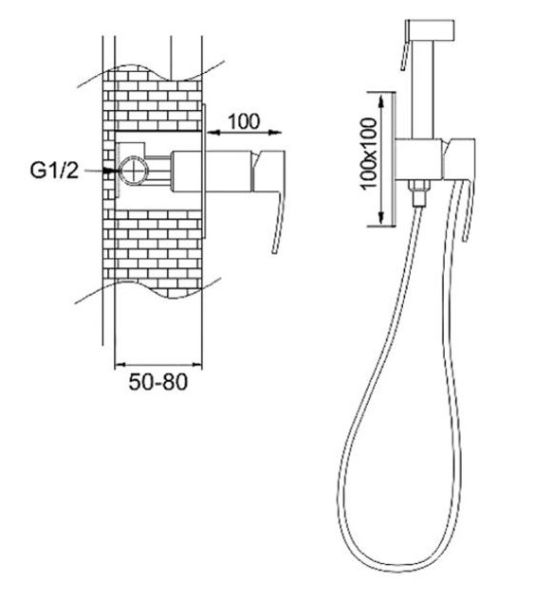 Гигиенический душ со смесителем Rose R1505T-2 оружейная сталь