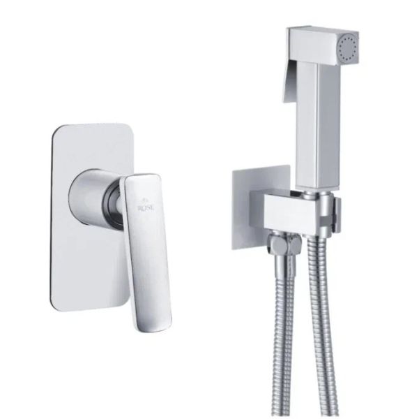 Гигиенический душ со смесителем Rose R1605F, белый/хром.Управление: рычажное.Материал: латунь.Монтаж: внутренний (скрытый).