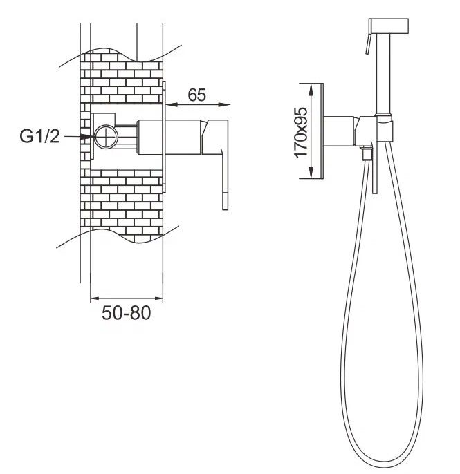 Гигиенический душ со смесителем Rose R255, хром.Управление: рычажное.Материал: латунь.Монтаж: внутренний (скрытый).